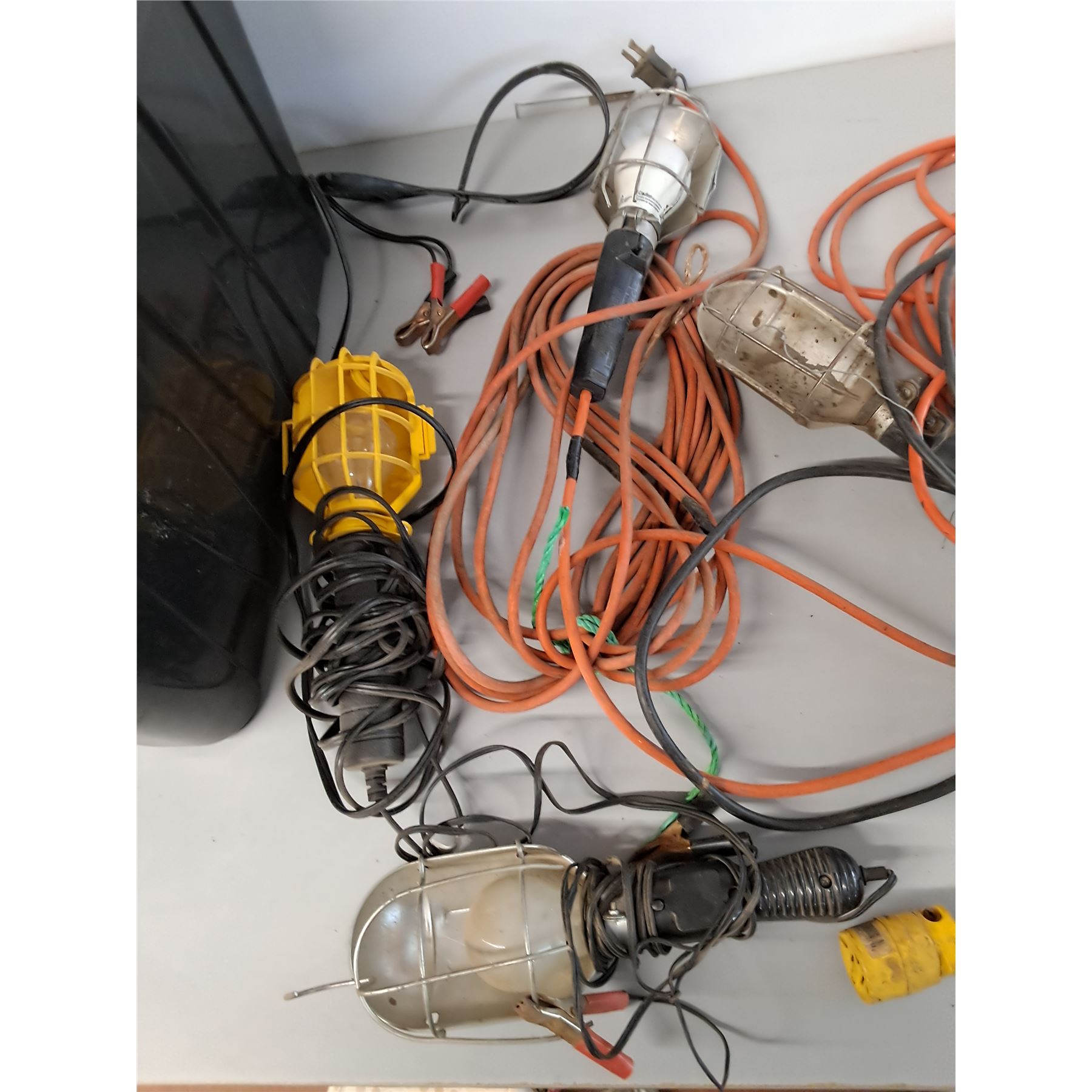 Storage Tote 21.5" x 15.5" x 12.75", Trouble Lights-As Is/Untested, Extension Cords, Canno Ship