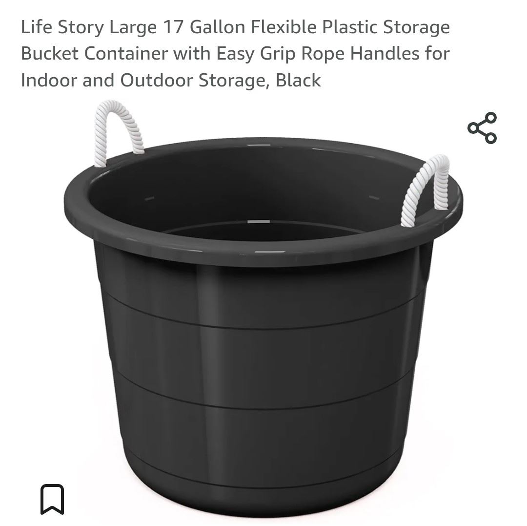Durable 17-gallon capacity, flexible plastic tub with comfortable rope handles, suitable for indoor/outdoor use, new.