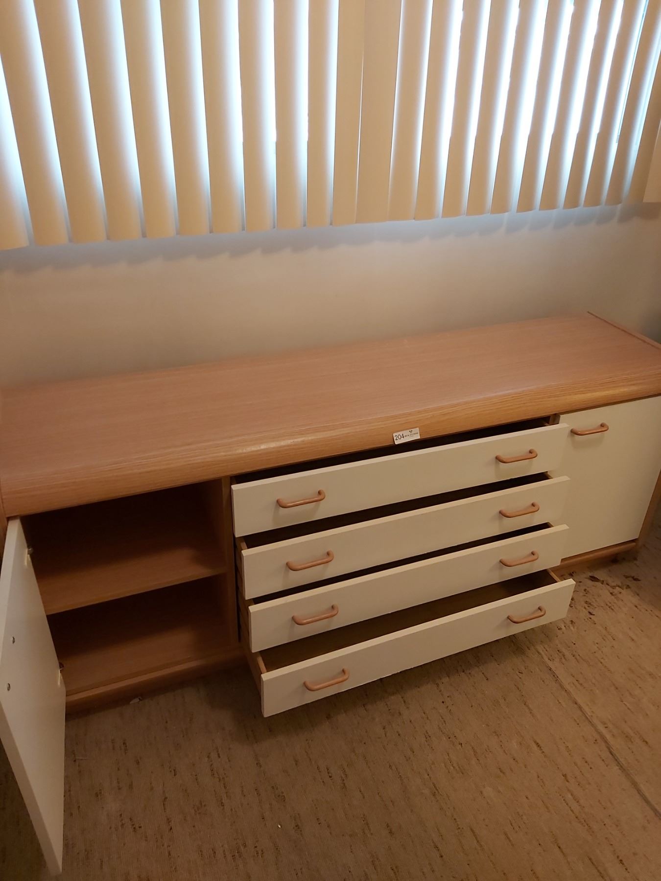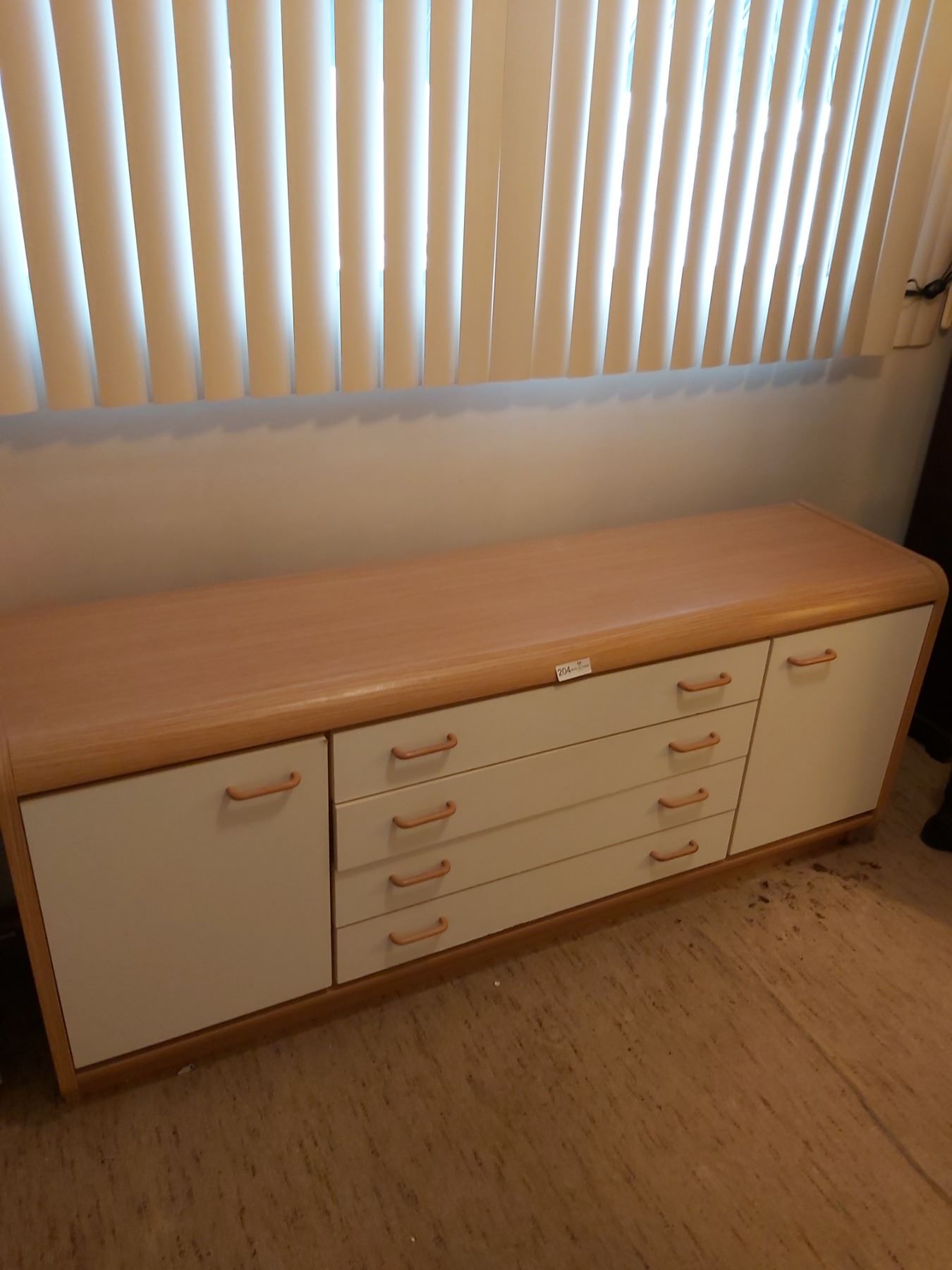 Storage dresser with 2 cupboards & 4 drawers. 69" wide x 17" 1/2 deep & 28" high