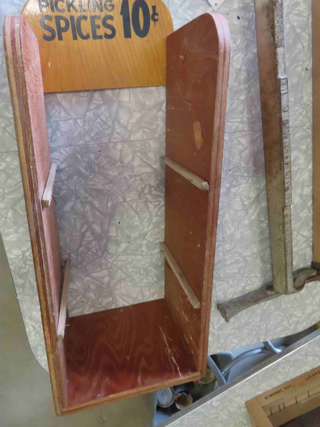 Store Paper Dispenser , Wood Pickling Spices Rack (Missing Shelves)