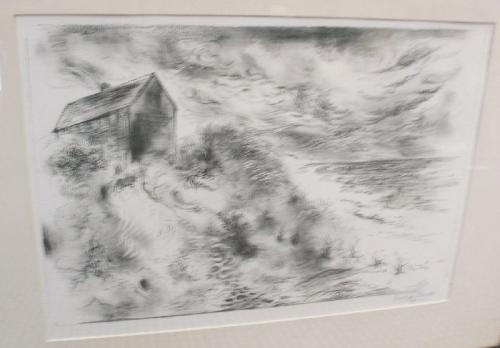Grosz, George (American 1893 - 1959) Lithograph, Signed lower right and dated 1949. Print Club of Cleveland label verso, minor water damage on bottom of mat, 9 1/2" by 13 1/2".