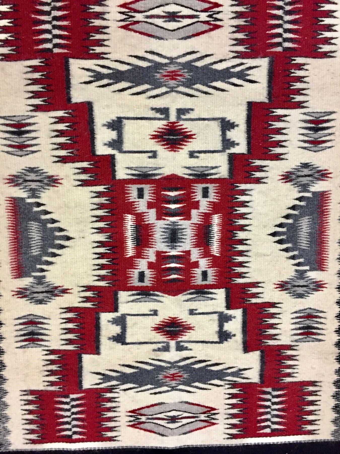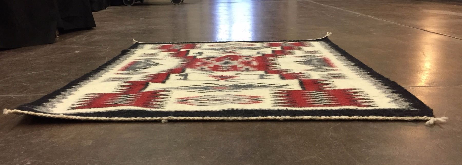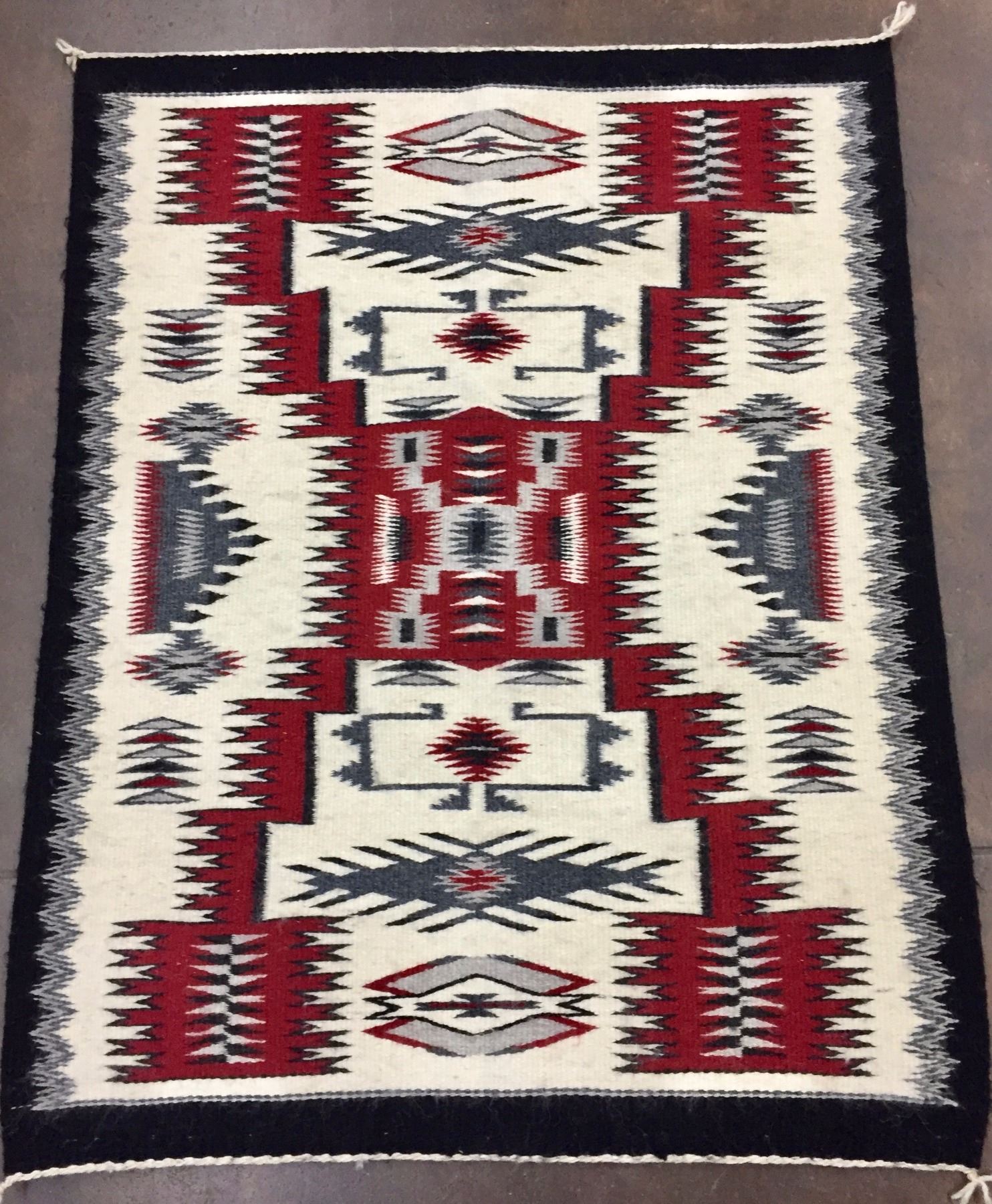 Description: A fine Storm Pattern Navajo textile. Has original paperwork from Packards in Santa Fe. Maker: Trudy Whitesheep, Navajo. Approx. Age: November, 2004 Size: 30” x 39”. Condition: Good for its age, normal wear expected. Please look closely at the pictures - they are an important part of our description. Shipping: There will be a $7 handling / packaging fee for shipping this lot. The actual cost of postage will be added on top of that.