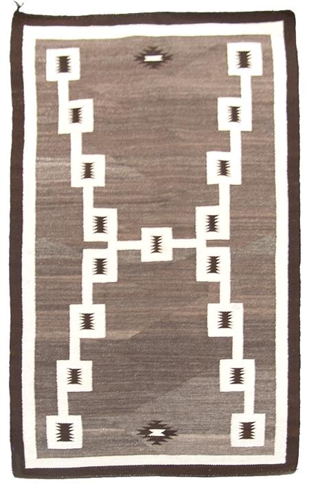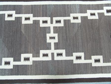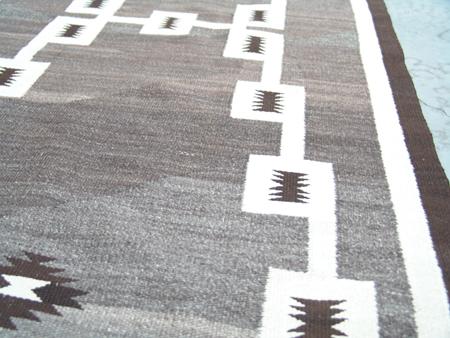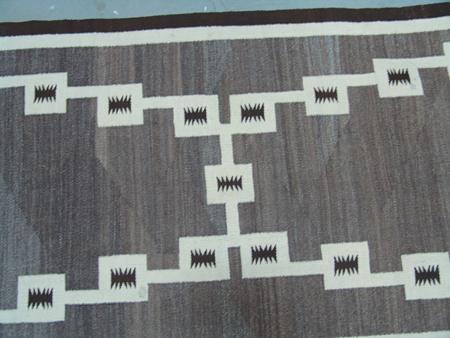 All natural homespun wool storm pattern rug on gray field. 5'1-1/2" x 2'10"