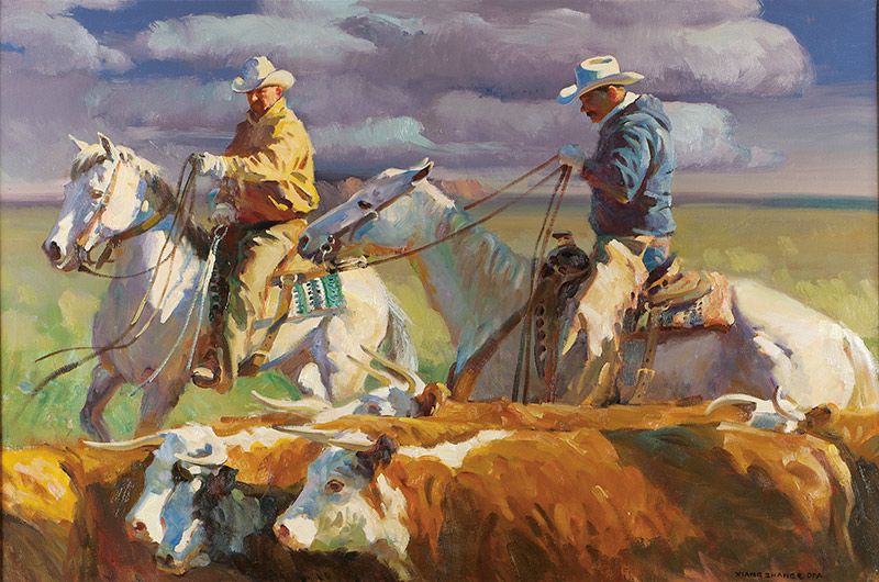 Xiang Zhang, b. 1954 | Signed: Xiang Zhang © OPA, l/r | Media: Oil on canvas | Dimensions: 32.5 by 47.5 inches