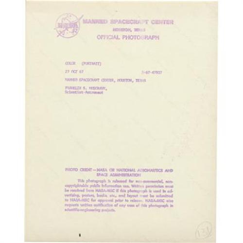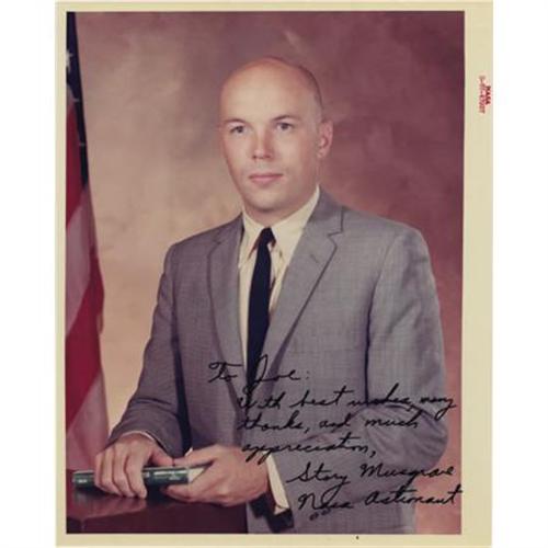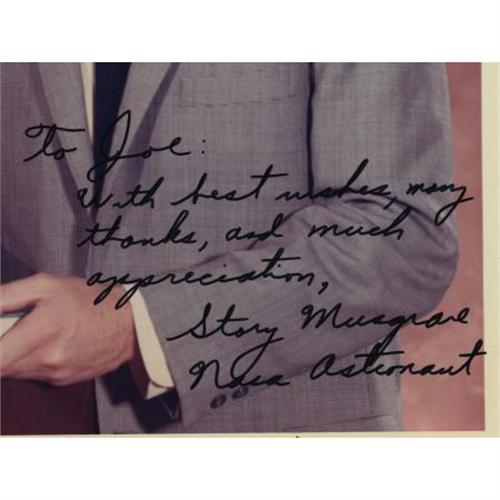 <B>Story Musgrave Signed Color Photograph,</B></I> 8" x 10", "<I>To Joe:/ With best wishes, many/ thanks, and much/ appreciation,/ Story Musgrave/ Nasa Astronaut.</B></I>" Musgrave, a medical doctor, has flown on six separate space shuttle missions as a mission specialist. <I>From the collection of renowned former physical trainer of the astronauts Joe Garino. This lot is accompanied by a signed certificate of authentication from Garino verifying its provenance.</B></I><BR><BR><b>Shipping:</b> Flat Material, Small (<a target="_blank" href="http://www.heritageauctions.com/common/shipping.php">view shipping information</a>)