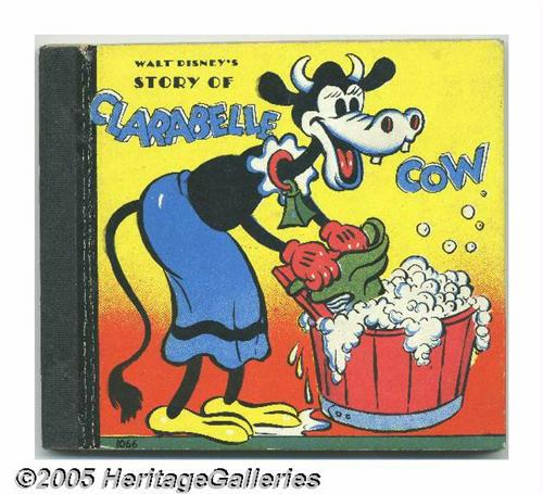 <B>Story of Clarabelle Cow (Whitman, 1938) Condition: VF/NM.</B></I> Sharp copy with almost white pages! Most difficult to find with such great interior paper stock. Guest appearance by Donald Duck. Former owner's inscription on interior front cover, light overall wear; bright cover colors. Not listed in Overstreet. <I>From the Larry Jacobs Collection.</B></I>