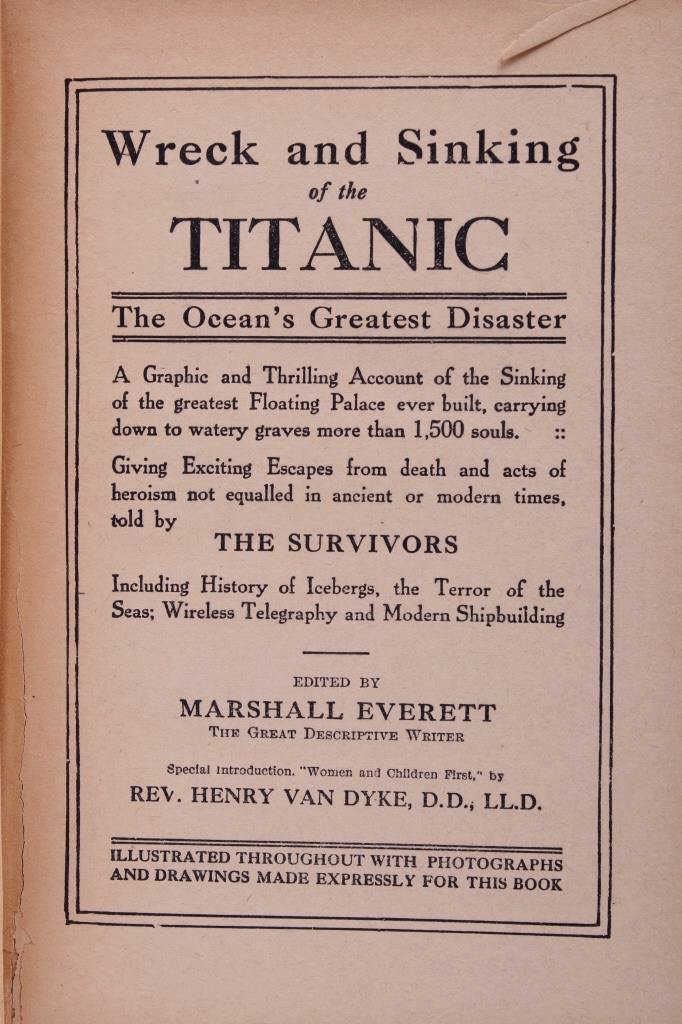 For your consideration is this Memorial edition of 'Story of the Wreck of the Titanic, The Ocean's Greatest Disaster' edited by Marshall Everett and printed in 1912. The book is a compilation of first hand accounts from surviving passengers on the titanic, as well as information about the ship itself, and other information regarding the subject. The book is in good condition for its age with some minor wear in places. The book measures 8 1/4" tall by 6" wide and 1 1/2" thick.