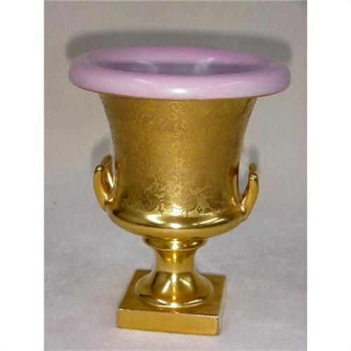 The Trenton Potteries Co., Trenton, New Jersey. "Stouffers Fine China" Urn shaped body with scrolled handles and square plinth base. All over floral pattern in gold, lavender interior.
