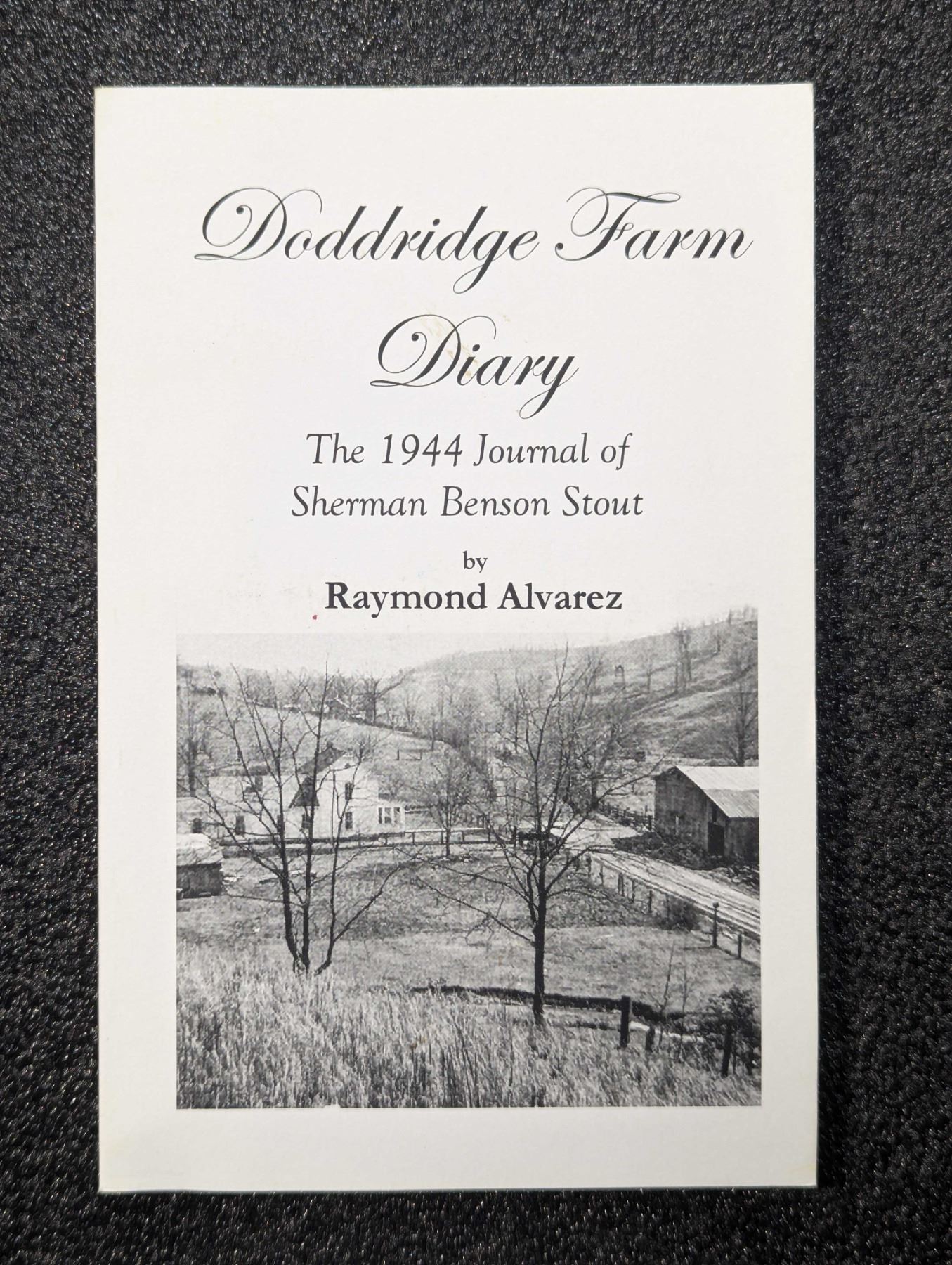 Stout, Sherman Benson & Raymond Alvarez [editor]. DODDRIDGE FARM DIARY - THE 1944 JOURNAL OF SHERMAN BENSON STOUT. Word's Worth Writing, Fairmont. 2001. 12mo. (1), 90, (1) pages. original printed card covers. Map. B&w photos. English text. The David Baker Library. Fine. The 1944 Journal of Sherman Benson Stout of Doddridge County, West Virginia. Lot weight: 0 lbs 5oz. Subject(s): West Virginia Biographical History.
