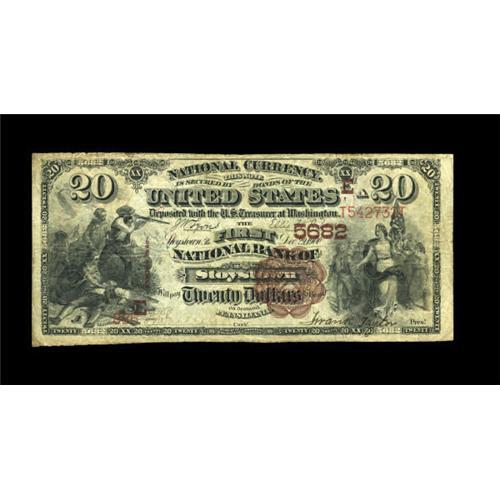 <B>Stoystown, PA</B></I> - $20 1882 Brown Back Fr. 504 <B>The First NB</B></I> Ch. # (E)5682<BR> A just plain rare Somerset County note, with just three Brown Backs from here listed in the census. Pen signed <B>Fine-Very Fine.</B></I><BR><BR><b>Shipping:</b> Coins & Currency (<a target="_blank" href="http://www.heritageauctions.com/common/shipping.php">view shipping information</a>)