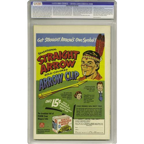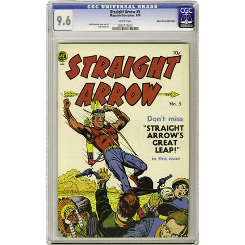 <B>Straight Arrow #5 Mile High pedigree (Magazine Enterprises, 1950) CGC NM+ 9.6 White pages.</B></I> This is a beautiful copy, worthy of its premier pedigree. CGC has certified one other copy of this issue, but it can't touch this! Fred Meagher cover, with Meagher and Bob Powell interior art. Overstreet 2006 NM- 9.2 value = $245. CGC census 3/06: 1 in 9.6, none higher.