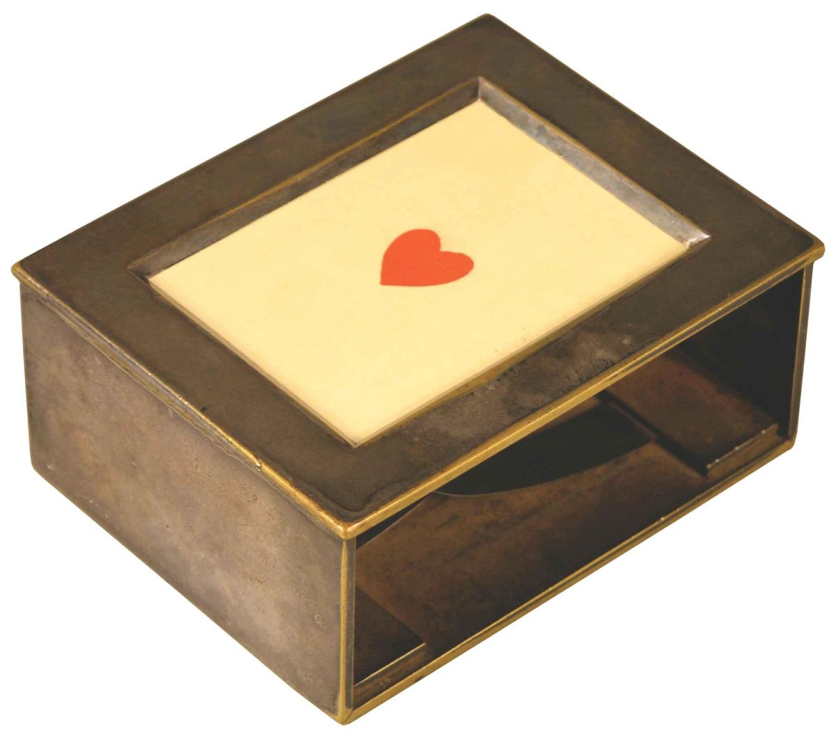 Straight Dealers box, unmarked. Nickel plated brass. Some normal wear otherwise very good condition. 3 X 4 X 1 5/8 inches.