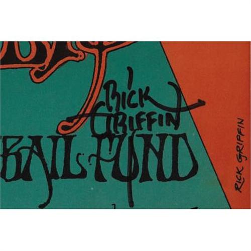 <B>Straight Theater Second Annual "Grope for Peace" Event Poster, Signed by the Artist (1967).</B></I> Rick Griffin contributed a true masterpiece design for this, his only Straight Theater poster. It includes bird-shaped lettering forming the words "Grope For Peace" and a Tibetan magic wand, known as a "phuba" on a field of red and green sunrays; two red hearts, with motion trails, sit below the wand. The first-printing poster measures approximately 19.25" x 28", and has been nicely matted and framed. In Fine condition.<BR><BR><b>Shipping:</b> Framed - with Glass, Medium (<a target="_blank" href="http://www.heritageauctions.com/common/shipping.php">view shipping information</a>)