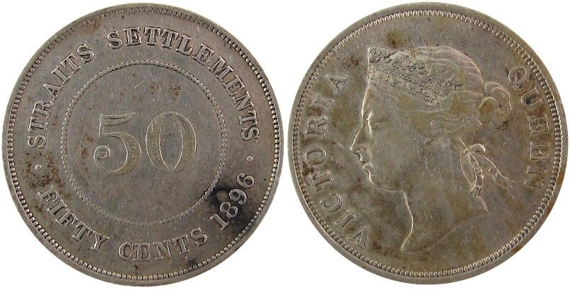 Strait Settlements 1896 50¢, KM#13. A nice problem free issue F/VF.