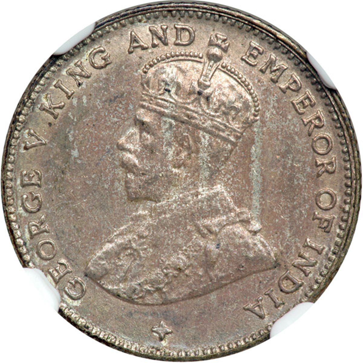 Straits Settlements. 10 Cents, 1918. KM-29a. George V. Toned. NGC graded AU-58.