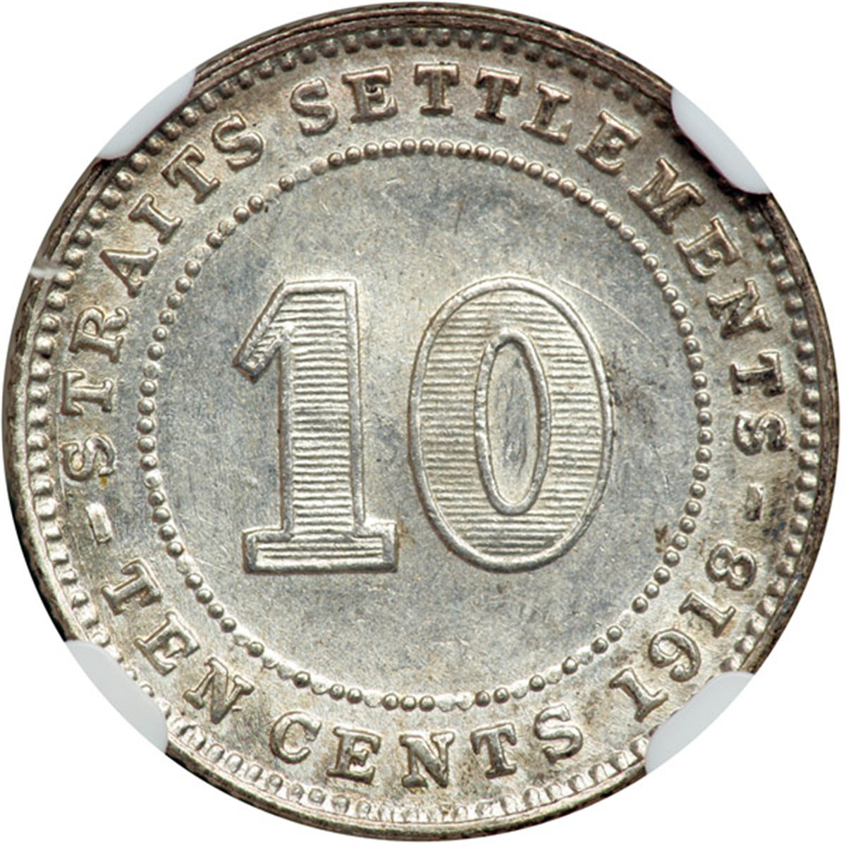 Straits Settlements. 10 Cents, 1918. NGC AU58