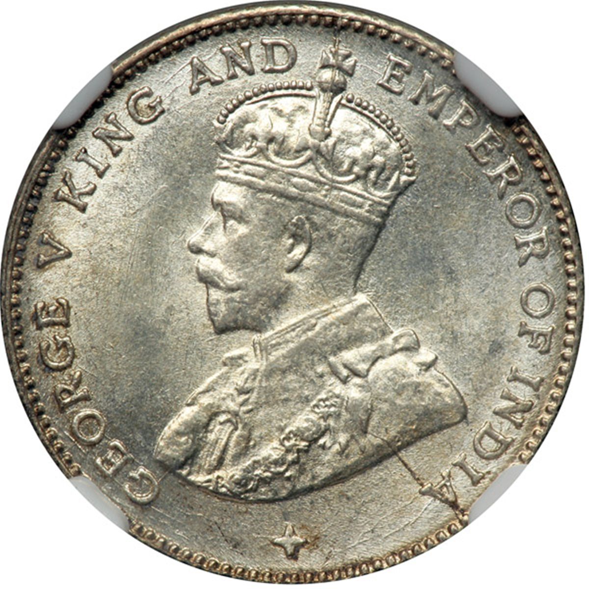 Straits Settlements. 10 Cents, 1919. KM-29a. George V. Bright luster. NGC graded MS-63.