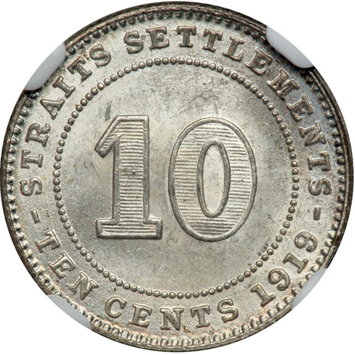 Straits Settlements. 10 Cents, 1919. NGC MS64