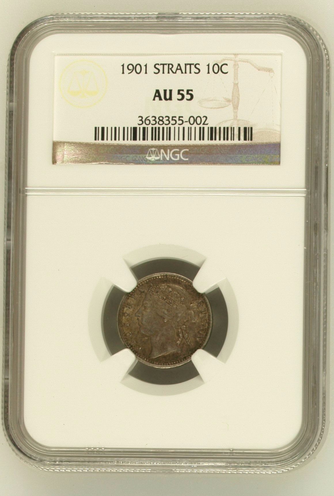 Straits Settlements 1901 10 Cents NGC AU55 *ONLY 5 GRADED*