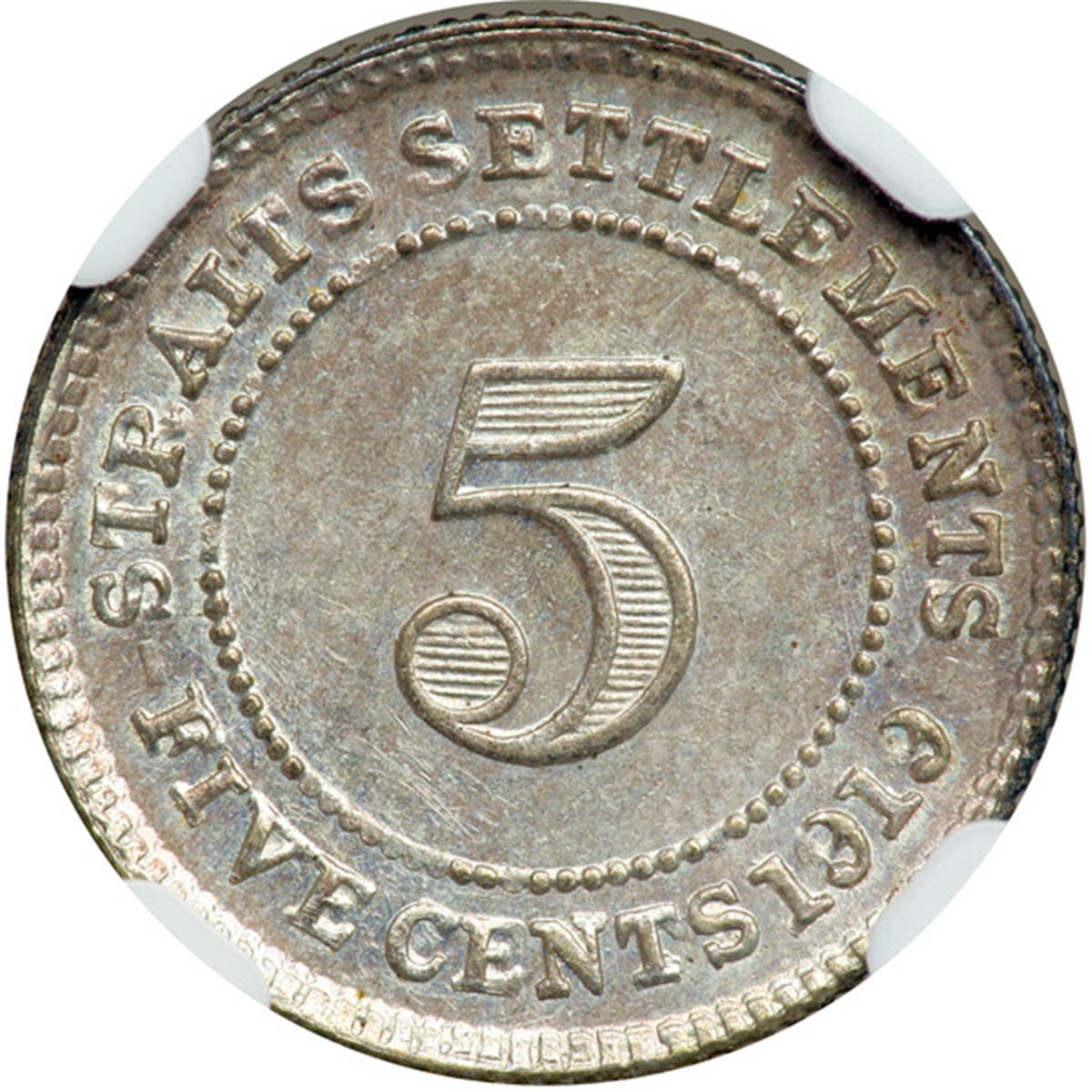 Straits Settlements. 5 Cents, 1919. NGC MS63