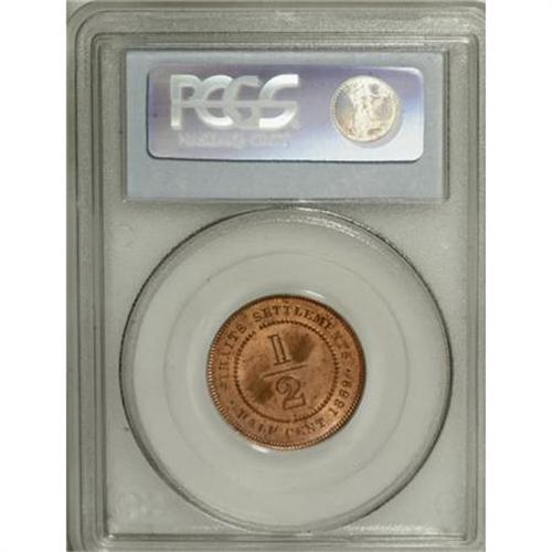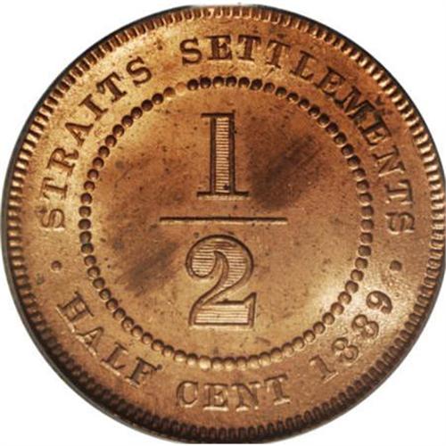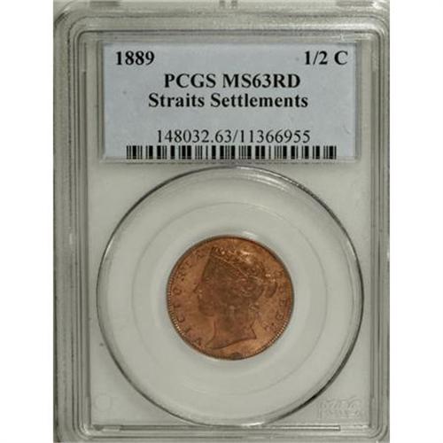 <B>Victoria bronze 1/2 Cent 1889,</B></I> KM-15, MS63 RD PCGS, deep red and truly exceptional, very choice. Most bronzes of this era, from British colonial Malaysia, never escaped the ravages of the humidity of that far corner of the world, not to mention having to pass safely through the last century.<BR><BR><b>Shipping:</b> Coins & Currency (<a target="_blank" href="http://www.heritageauctions.com/common/shipping.php">view shipping information</a>)