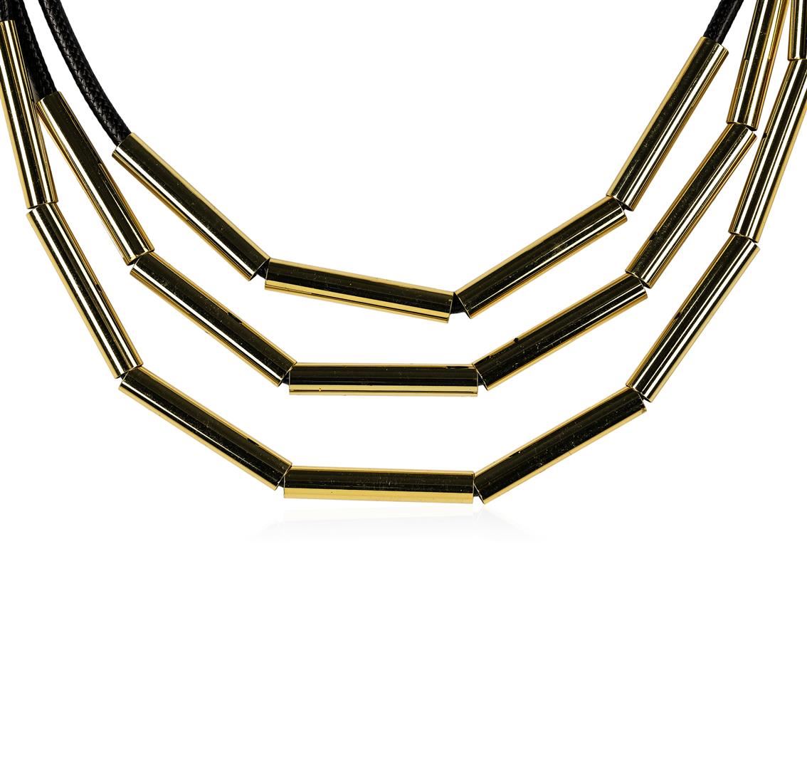 High end designer jewelry. Strand Cord Necklace - Gold Plated. 18 K Gold Plated(3.5") Ext Clasp. Black/ Gold. 19inches.