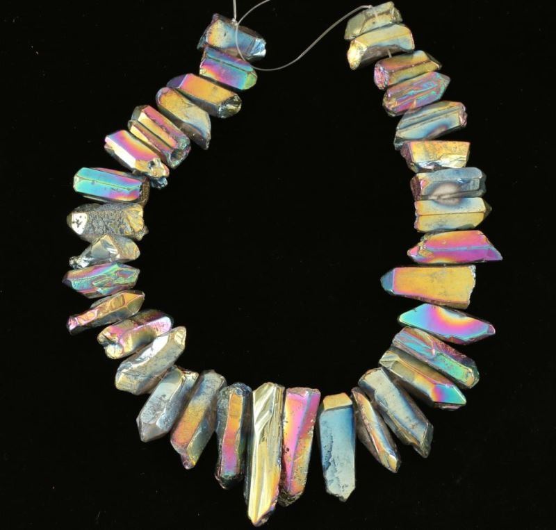 Iridescent rainbow colors on a 16" strand in various sizes and shapes.