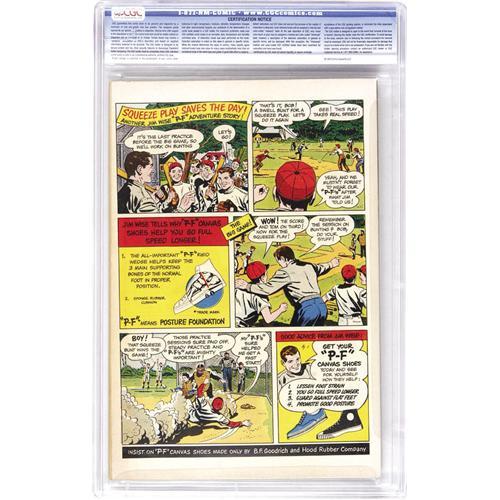 <B>Strange Adventures #10 (DC, 1951) CGC NM 9.4 Cream to off-white pages.</B></I> Captain Comet encounters a not-so-little green man from outer space on this issue's colorful Bob Oksner cover. Inside, the artistic thrills continue with contributions from Carmine Infantino, Howard Purcell, and Murphy Anderson. If high-grade copies are your thing, check this beautiful example out - especially that smooth, stress-free spine! Overstreet 2006 NM- 9.2 value = $1,300. CGC census 5/06: 3 in 9.4, 2 higher. <BR><BR><B>Important notice:</B> Heritage usually auctions material at the rate of 200-250 lots per hour. On some occasions eBay Live bid software or the Internet may not be able to keep up with the pace of the auction. We recommend placing a realistic absentee bid now as insurance to avoid disappointment. Occasionally the auctioneer may eliminate or reject an eBay Live bid, and the auctioneer may also reopen a lot after the close of the eBay live bidding (usually because we missed an audience bid), and may reject your bid even if it shows you as the winning bidder. By bidding via eBay Live, you agree that Heritage may award the lot to another bidder at its sole discretion under the circumstances described above or any other reasonable circumstances. Since eBay bids are not shown to us until we open the lot on the floor, we treat those bids just like floor bids. In most cases the floor responds before the eBay bid is presented to us, due to Internet lag time, so for consistency we have made it a policy that floor bids are always considered first over tie eBay live bids. Also please note that all Heritage lots purchased through eBay Live carry a 22.5% Buyer's Premium. Please make sure you read the Terms and Conditions before you bid. This lot is being auctioned in conjunction with a live floor auction by Heritage Auction Galleries. All final auction and invoice information will be supplied by Heritage Auction Galleries, and all other information should be considered preliminary. Lot:41001 <BR><BR><B>Winning Notification and Billing:</B> After the FINAL session in this auction is complete, Heritage will send e-mail and snail mail invoices. This process normally takes several days. All final auction and invoice information will be supplied by Heritage Auction Galleries, and all other information should be considered preliminary. <BR><BR>This auction will be conducted on a live auction floor and over the Internet through eBay Live. If you choose to place an absentee bid, please take a moment to <font color='#0000ff'><u><a href='http://pages.ebay.com/liveauctions/help/before/laabsentee.html'>learn how eBay Live absentee bidding works</a></u></font><font color='#000000'>