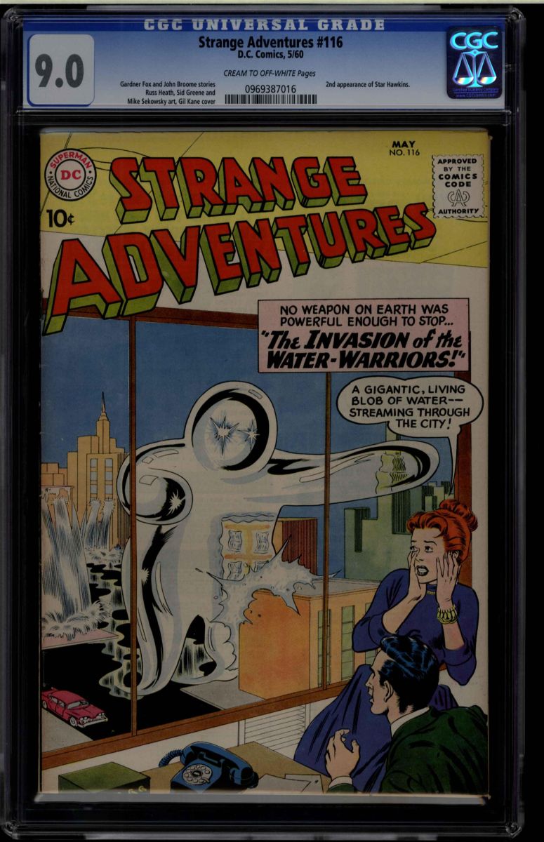 Strange Adventures #116 CGC 9.0 cream to off-white pages. Gardner Fox and John Broome stories. Russ Heath, Sid Greene and Mike Sekowsky art. Gil Kane cover. 2nd appearance of Star Hawkins.