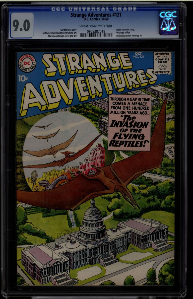 Strange Adventures #121 CGC 9.0 cream to off-white pages. Gardner Fox story. Sid Greene and Carmine Infantino art. Murphy Anderson cover and art. Space Museum story. Full page ad for Justice League of America #1.