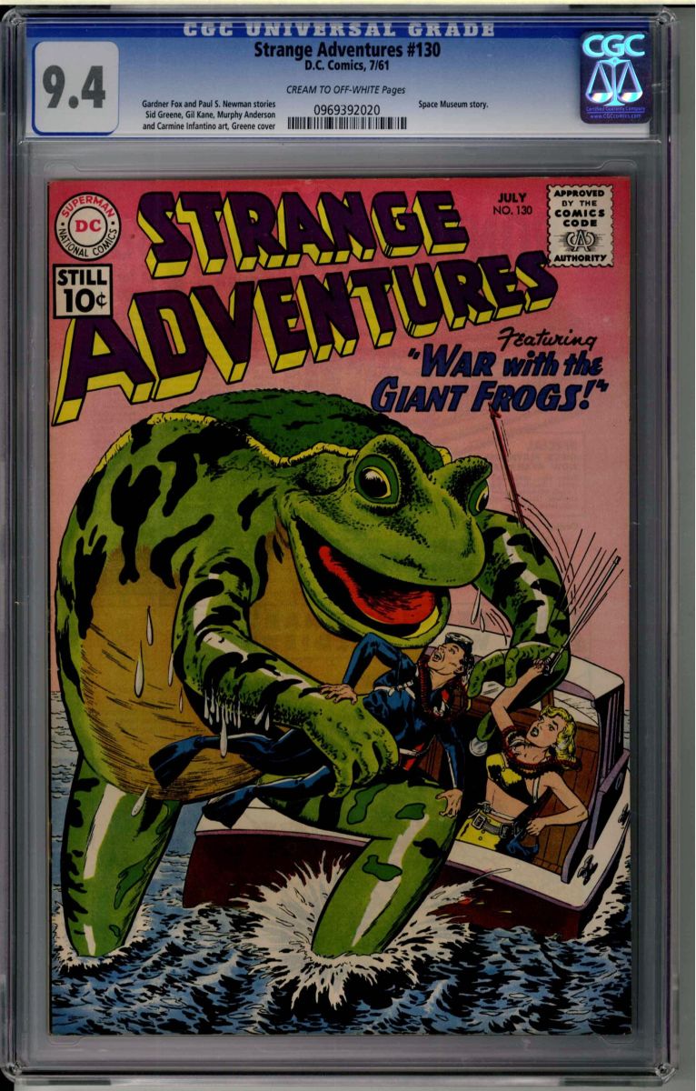 Strange Adventures #130 CGC 9.4 cream to off-white pages. Gardner Fox and Paul S. Newman stories. Sid Greene, Gil Kane, Murphy Anderson and Carmine Infantino art, Greene cover. Space Museum story.