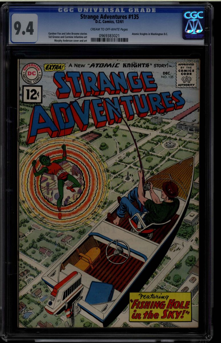 Strange Adventures #135 CGC 9.4 cream to off-white pages. Gardner Fox and John Broome stories. Sid Greene and Carmine Infantino art. Murphy Anderson cover and art. Atomic Knights in Washington D.C.