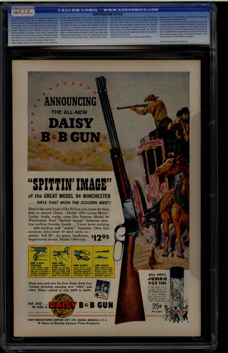 The Auctioneer has reserved the right to reject any and all bids, and to bid at the auction. Auctioneers Auctions are not on approval. Auctioneer does not allow certified material to be returned because of possible differences of opinion with respect to the grade offered by any third party organization, dealer, or service. Absolutely no guarantee of grade is offered for un-certified property sold and subsequently submitted to a third-party grading service. There will be no exceptions to this policy. Under extremely limited circumstances, (e.g. gross cataloging error) a purchaser, who did not bid from the floor, may request Auctioneer to evaluate voiding a sale; such request must be made in writing detailing the alleged gross error, and submission of the lot to the Auctioneer must be pre-approved by the Auctioneer. Bidder must notify Auctioneer in writing of such request within three (3) days of the non-floor bidder receipt of the lot. Any lot that is to be evaluated must be in our offices within 30 days after Auction. Grading does not qualify for this evaluation process nor do such complaints constitute a basis to challenge the authenticity of a lot. AFTER THAT 30-DAY PERIOD, NO LOTS MAY BE RETURNED FOR REASONS OTHER THAN AUTHENTICITY. Lots returned must be housed intact in the original holder. No lots purchased by floor Bidders may be returned (including those Bidders acting as agents for others). Late remittance for purchases may be considered just cause to revoke all return privileges. B: Auctions conducted solely on the Internet have a THREE (3) DAY RETURN POLICY: Lots paid for within seven days of the Auction closing are sold with a three (3) day return privilege. You may return lots under the following conditions: Within three days of receipt of the lot, you must first notify Auctioneer by contacting Client Service by phone (314-680-8599) or e-mail (moundcityauctions@gmail.com), and immediately mail the lot(s) fully insured to the attention of Returns, Mound City Auctions 1081 Teson Rd. Hazelwood, MO. 63042. Lots must be housed intact in their original holder and in their original condition. You are responsible for the insured, safe delivery of any lots. Auctioneer will not be responsible for lots returned in non-registered mail or lots returned without prior authorization per section B. A non-negotiable return fee of 5% of the purchase price ($10 per lot minimum) will be deducted from the refund for each returned lot or billed directly. Postage and handling fees are not refunded. After the three-day period (from receipt), no items may be returned for any reason. Late remittance for purchases revokes all Return-Restock privileges. C: Bidders who have inspected the lots prior to the auction will not be granted any return privileges. D: Comic books sold referencing a third-party grading service are sold “as is” without any express or implied warranty. Certain warranties may be available from the grading services and the Bidder is referred to them for further details: Certified Guaranty Company, LLC. (CGC), P.O. Box 4738, Sarasota, FL 34230. E: Bidders who intend to challenge authenticity or provenance of a lot must notify Auctioneer in writing within thirty (30) days of the Auctions conclusion. In the event Auctioneer cannot deliver the lot or subsequently it is established that the lot lacks title, provenance, authenticity, or other transfer or condition issue is claimed, Auctioneer's liability shall be limited to rescission of sale and refund of purchase price; in no case shall Auctioneer's maximum liability exceed the high bid on that lot, which bid shall be deemed for all purposes the value of the lot. After one year has elapsed, Auctioneer's maximum liability shall be limited to any commissions and fees Auctioneer earned on that lot. F: All comics are guaranteed genuine, but are not guaranteed as to grade, since grading is a matter of opinion, an art and not a science, and therefore the opinion rendered by the Auctioneer or any third party grading service may not agree with the opinion of others (including trained experts), and the same expert may not grade the same item with the same grade at two different times. G: Since we cannot examine encapsulated comics, they are sold “as is”without our grading opinion, and may not be returned for any reason. Auctioneer shall not be liable for any patent or latent defect or controversy pertaining to or arising from any encapsulated collectible. In any such instance, purchaser's remedy, if any, shall be solely against the service certifying the collectible. H: Due to changing grading standards over time, differing interpretations, and to possible mishandling of items by subsequent owners, Auctioneer reserves the right to grade items differently than shown on certificates from any grading service that accompany the items. Auctioneer also reserves the right to grade items differently than the grades shown in the prior catalog should such items be reconsigned to any future auction. I: Although consensus grading is employed by most grading services, it should be noted as aforesaid that grading is not an exact science. In fact, it is entirely possible that if a lot is broken out of a plastic holder and resubmitted to another grading service or even to the same service, the lot could come back with a different grade assigned. J: Certification does not guarantee protection against the normal risks associated with potentially volatile markets. The degree of liquidity for certified collectibles will vary according to general market conditions and the particular lot involved. For some lots there may be no active market at all at certain points in time."