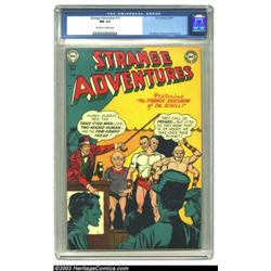 Strange Adventures #15 (DC, 1951) CGC NM 9.4 Off-white to white pages. For nearly 200 issues, DC's threesome of Gil Kane, Carmine Infantino, and Murphy Anderson provided interior artwork in practically every issue, which goes a long way to explaining the longevity of this title. Here Kane also contributes the cover art. CGC hasn't certified a higher grade for this issue to date. Overstreet 2003 NM 9.4 value = $700. Important notice: Heritage usually auctions material at the rate of 200-250 lots per hour. On some occasions eBay Live bid software or the Internet may not be able to keep up with the pace of the auction. We recommend placing a realistic absentee bid now as insurance to avoid disappointment. Occasionally the auctioneer may eliminate or reject an eBay Live bid, and the auctioneer may also reopen a lot after the close of the eBay live bidding (usually because we missed an audience bid), and may reject your bid even if it shows you as the winning bidder. By bidding via eBay Live, you agree that Heritage may award the lot to another bidder at its sole discretion under the circumstances described above or any other reasonable circumstances. Also please note that all Heritage lots purchased through eBay Live carry a 20% Buyer's Premium. Please make sure you read the Terms and Conditions before you bid.