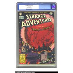 Strange Adventures #2 (DC, 1950) CGC VF+ 8.5 Off-white to white pages. If you think that the cover on this early Fifties DC sci-fi title is nice, wait until you read the stories inside. Perhaps DC's most significant science-fiction run, Strange Adventures is a quintessential 1950s comic, one which paved the way for many more to follow. Virgil Finlay, Gardner Fox and Jack Kirby are all represented here. This particular copy is sharp, clean and attractive. Well-preserved for 52 years, this one is a real beauty. Overstreet 2002 VF 8.0 value = $944; NM 9.4 value = $1,775. Important notice: We expect to be auctioning lots at the rate of 200-250 per hour. Sometimes eBay Premier live bid software cannot keep up with that pace, so we strongly recommend that you place a realistic proxy bid now as insurance to avoid disappointment. Also please note that all Heritage/CAA lots purchased through eBay Premier carry a 20% Buyer's Premium. Please make sure you read the Terms and Conditions.