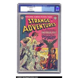 Strange Adventures #20 (DC, 1952) CGC VF- 7.5 Off-white pages. Really pretty copy with a small corner crease at front bottom, very light crease at back top, and a few stress signs along the spine. Otherwise, it's pushing for Near Mint. Overstreet 2002 VF 8.0 value = $368. Important notice: We expect to be auctioning lots at the rate of 200-250 per hour. Sometimes eBay Premier live bid software cannot keep up with that pace, so we strongly recommend that you place a realistic proxy bid now as insurance to avoid disappointment. Also please note that all Heritage/CAA lots purchased through eBay Premier carry a 20% Buyer's Premium. Please make sure you read the Terms and Conditions.