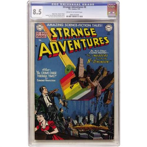 <B>Strange Adventures #4 (DC, 1951) CGC VF+ 8.5 Cream to off-white pages.</B></I> Chris KL-99 is the featured character in this sci-fi mag. The issue's artists include Curt Swan. Overstreet 2007 VF 8.0 value = $646; VF/NM 9.0 value = $1,123. CGC census 6/07: 2 in 8.5, 5 higher.<BR><BR><b>Shipping:</b> Comics - Slabbed (certified) (<a target="_blank" href="http://www.heritageauctions.com/common/shipping.php">view shipping information</a>)