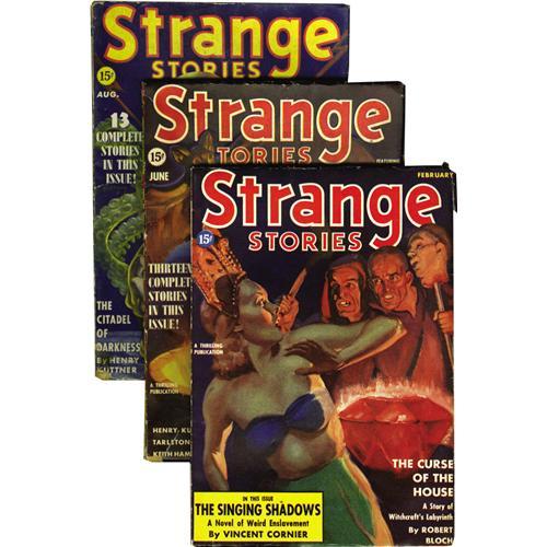 <B>Strange Stories Group (Better Publications, 1939) Condition: Average VG+.</B></I> Includes the February (first issue), June, August, and October 1939 issues of the short-lived horror pulp. Include stories by Robert Bloch, Henry Kuttner, E. Hoffman Price, and August Derleth. Bookery's Guide to Pulps VG value for group = $225.<BR><BR><b>Shipping:</b> Books & Catalogs (<a target="_blank" href="http://www.heritageauctions.com/common/shipping.php">view shipping information</a>)