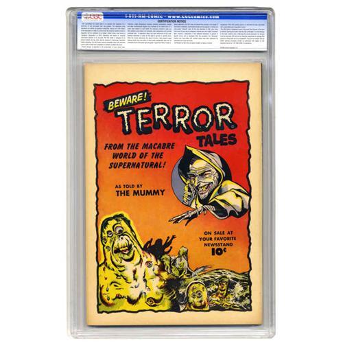 <B>Strange Stories from Another World #4 Crowley Copy pedigree (Fawcett, 1952) CGC NM 9.4 Off-white to white pages.</B></I> The painted covers by pulp ace Norman Saunders are what collectors love about this series. This copy's the only 9.4, and highest-graded copy overall, that CGC has certified to date. Overstreet 2005 NM- 9.2 value = $460. CGC census 12/05: 1 in 9.4, none higher.