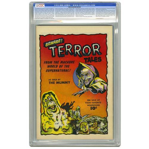 <B>Strange Suspense Stories #2 Crowley Copy pedigree (Fawcett, 1952) CGC NM 9.4 Off-white pages.</B></I> Here's a pristine copy of a pre-Code horror mag, and one with two great artists at that. Bernard Baily had a talent for covers that were not just frightening but disturbing, and this one's certainly in that vein. And there's also a story drawn by George Evans of EC fame. Overstreet 2006 NM- 9.2 value = $625. CGC census 3/06: 2 in 9.4, none higher.