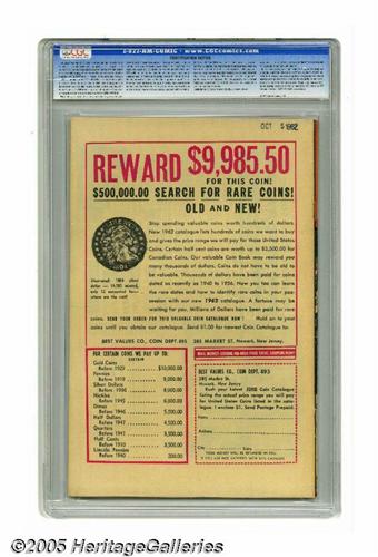 50. Auctioneer offers no opinion as to the validity of a grade assigned by any third-party grading service. Since we cannot examine C.G.A. encapsulated notes or Comics Guaranty Corporation (CGC) encapsulated comics, they are sold "as is" without our grading opinion, and may not be returned for any reason. Auctioneer shall not be liable for any patent or latent defect or controversy pertaining to or arising from any encapsulated collectible. In any such instance, purchaser's remedy, if any, shall be solely against the certification service certifying the collectible.