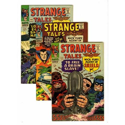 <B>Strange Tales Group (Marvel, 1966) Condition: Average VF.</B></I> Includes #143, 144, 145, 147, and 149. Jack Kirby art in some. Approximate Overstreet value for group = $175. <I> From the Madison Monk Collection.</B></I><BR><BR><b>Shipping:</b> Comics - Unslabbed (<a target="_blank" href="http://www.heritageauctions.com/common/shipping.php">view shipping information</a>)