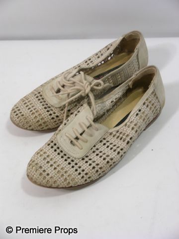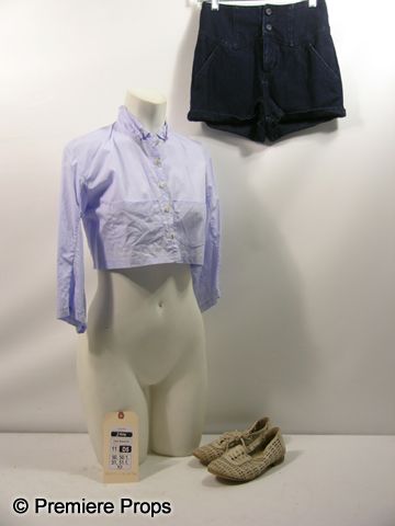 Amy (Kate Bosworth) screen worn, light blue cotton cropped 'Edward Meadham' blouse, navy dark denim 'Silence + Noise' shorts, and bone woven flat oxford style lace up the front 'Steve Madden' shoes. Includes wardrobe tag!
