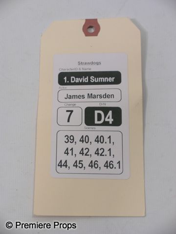 David (James Marsden) screen worn, chambray cotton two button 'Theory' jacket, (size 38) white weave cotton 'Theory' shirt, (size M) pale grey flat front 'Topman' pants, and lace up the front grey suded 'Brooks Brothers' shoes. Includes wardrobe tag!