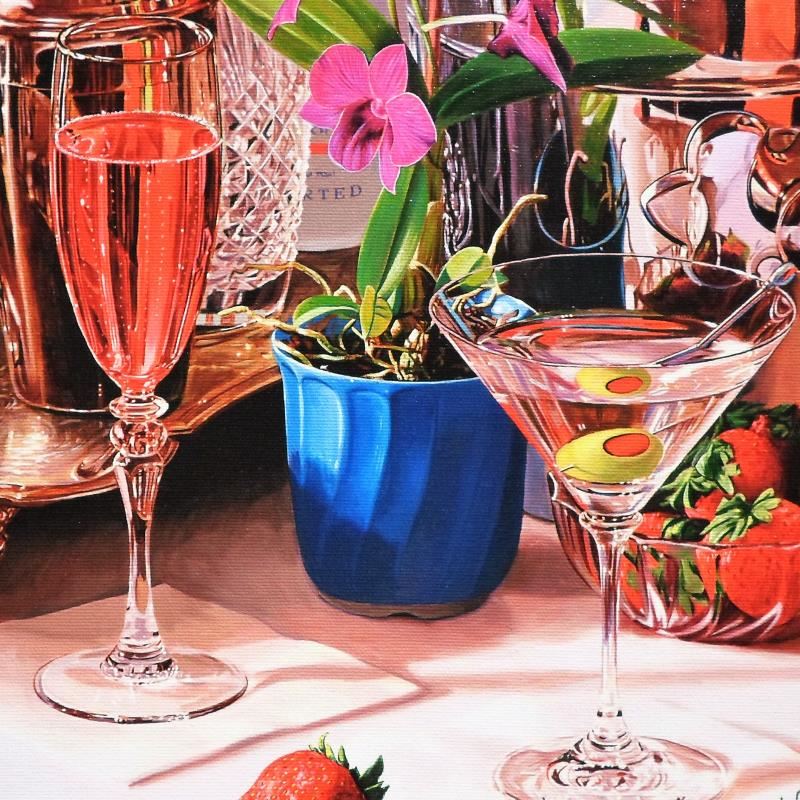 "Strawberries For Lunch" is a numbered limited edition giclee on canvas by Nobu Hairara. It comes bearing the artist's authorized signature and with a Certificate of Authenticity. Measures approximately 11.25"x11.25" (image).