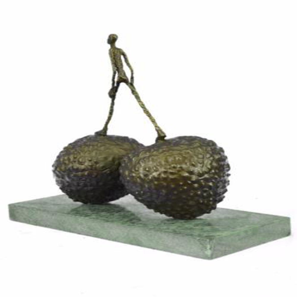 The modern real Bronze Sculpture of Strawberry exhibit that was made of high quality Bronze is impressive art because of its size and because of the very detailed creation. This gorgeous strawberry is looking like a real and very fresh strawberry. The colorful style of the modern art Sculpture Walking Strawberry is what people call an eye catcher. The detailed let the fruit looking realistic like a just harvested strawberry. The Bronze Sculpture was cast using the age old method of lost wax casting and stained with a brown patina finish for perpetuation. She rests upon a marble Base. Bronze Dimensions with Marble Base: Height 12 X Width 12 inches. Weight: 13 LBS.