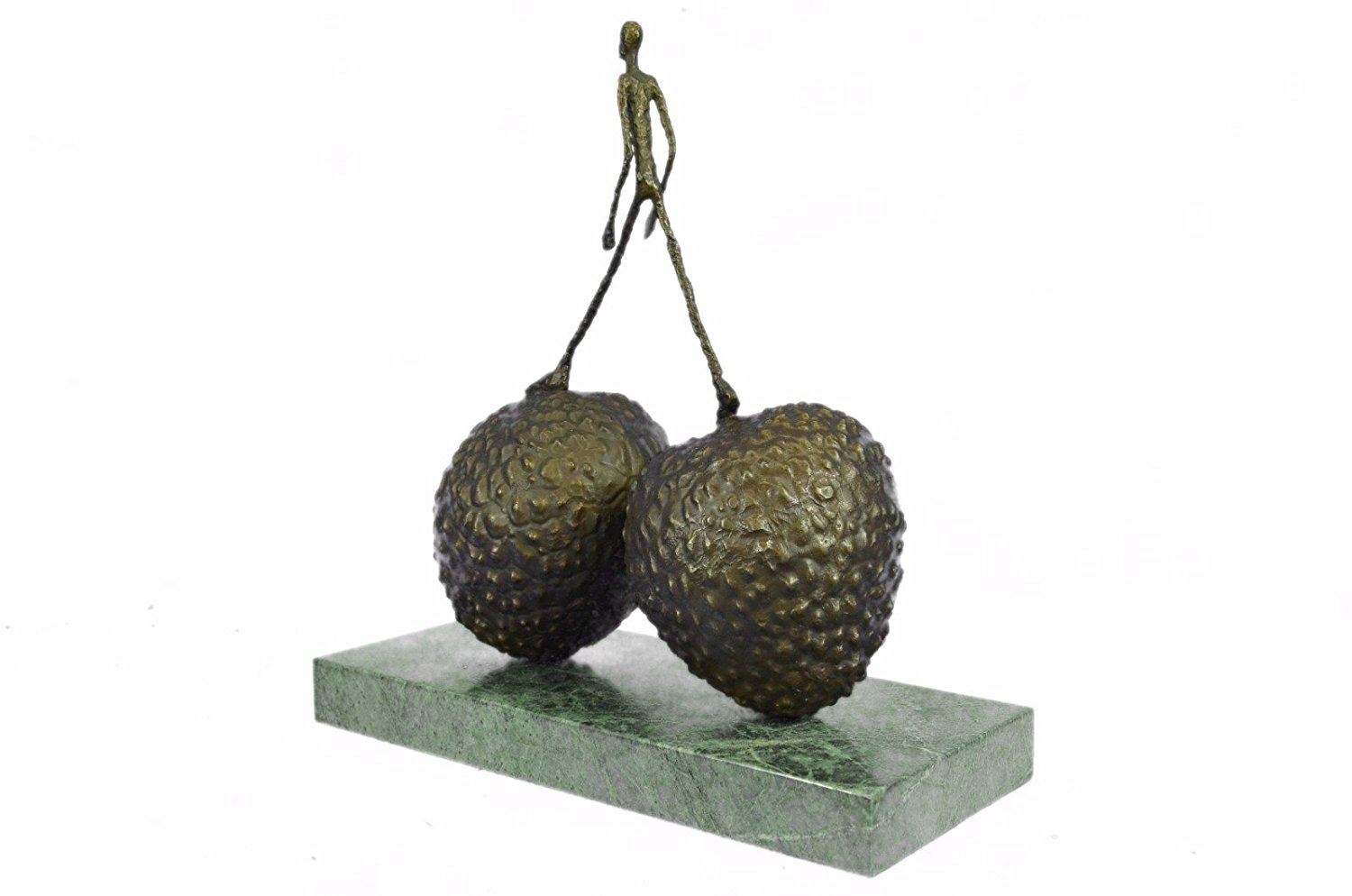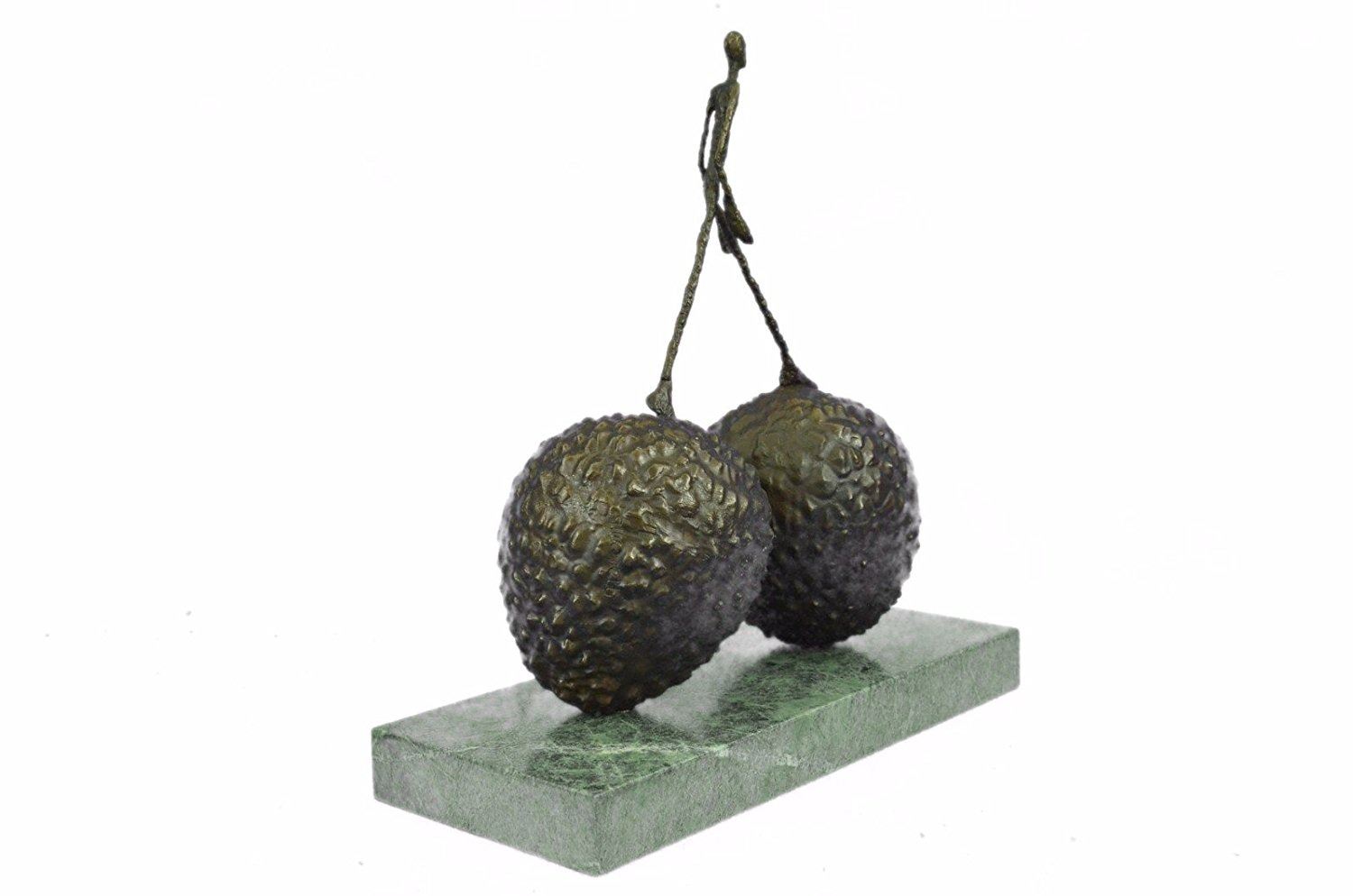 The modernreal bronze sculpture of Strawberry with a walking man was made as a tribute to Swiss artist Giacometti. The exhibit that was made of high quality bronze is impressive art because of its size and because of the very detailed creation. This gorgeous strawberry is looking like a real and very fresh strawberry. The colourful style of the modern art sculpture Walking Strawberry is what people call an eyecatcher. The detailed let the fruit looking realistic like a just harvested strawberry. The 100% bronze sculpture was cast using the ageold method of lostwax casting and stained with a brown patina finish for perpetuation. She rests upon a variegated green marble. Bronze Dimensions with Marble Base: Height 12 X Width 12 inches. Weight: 14 LBS. Inventory: 25XN169313552