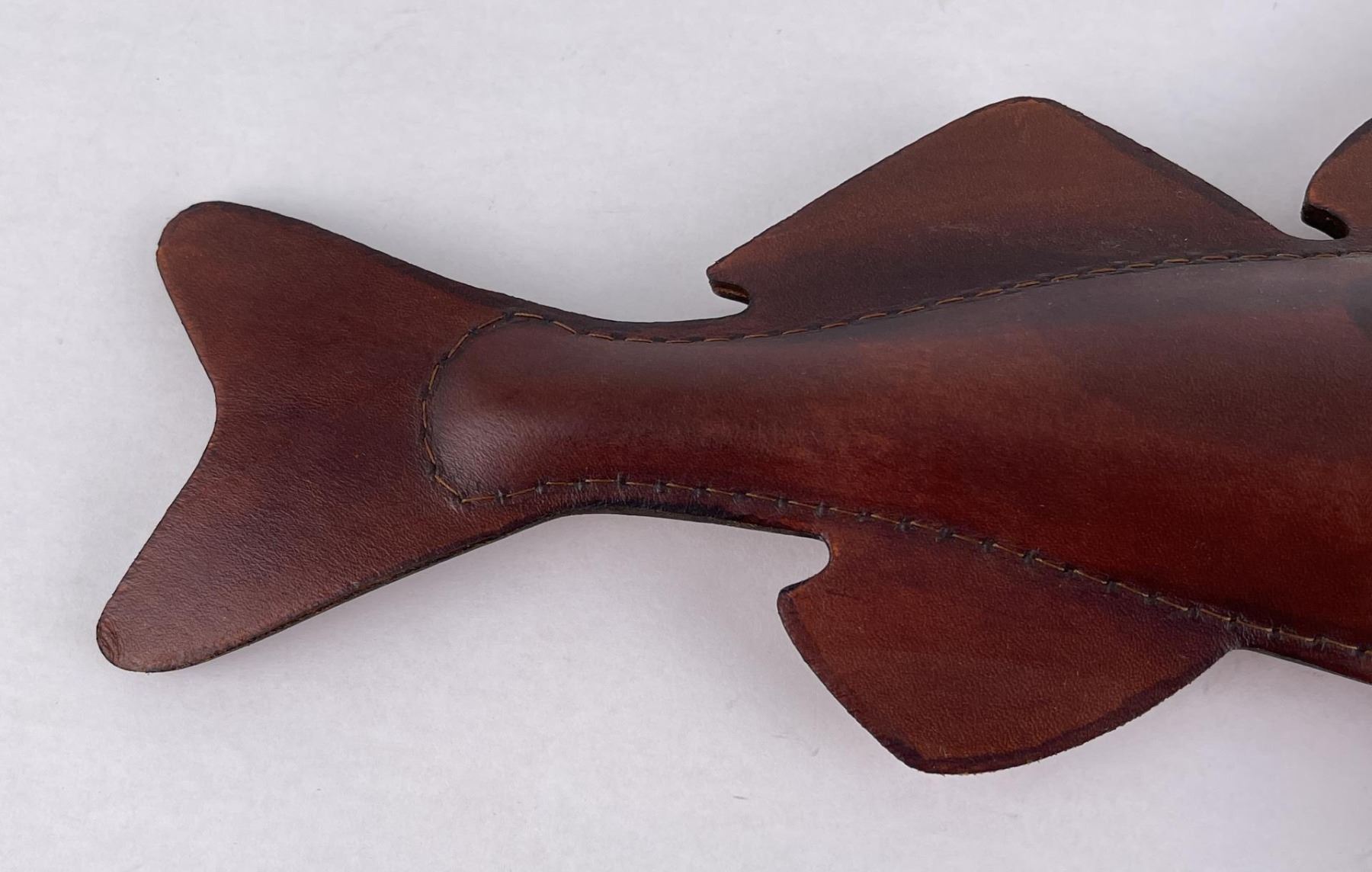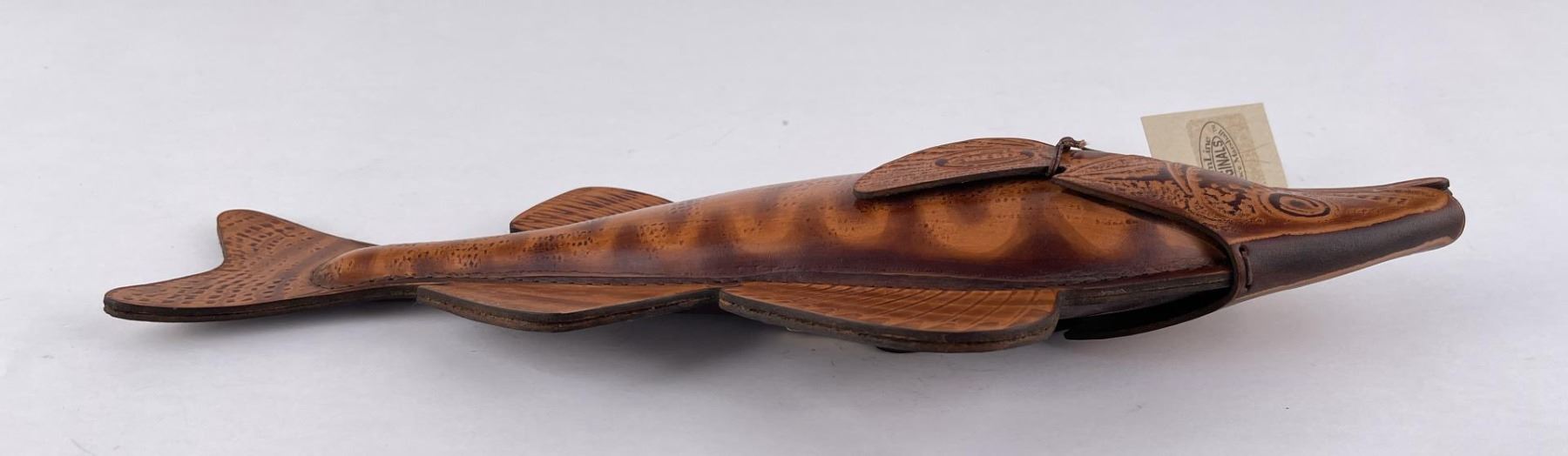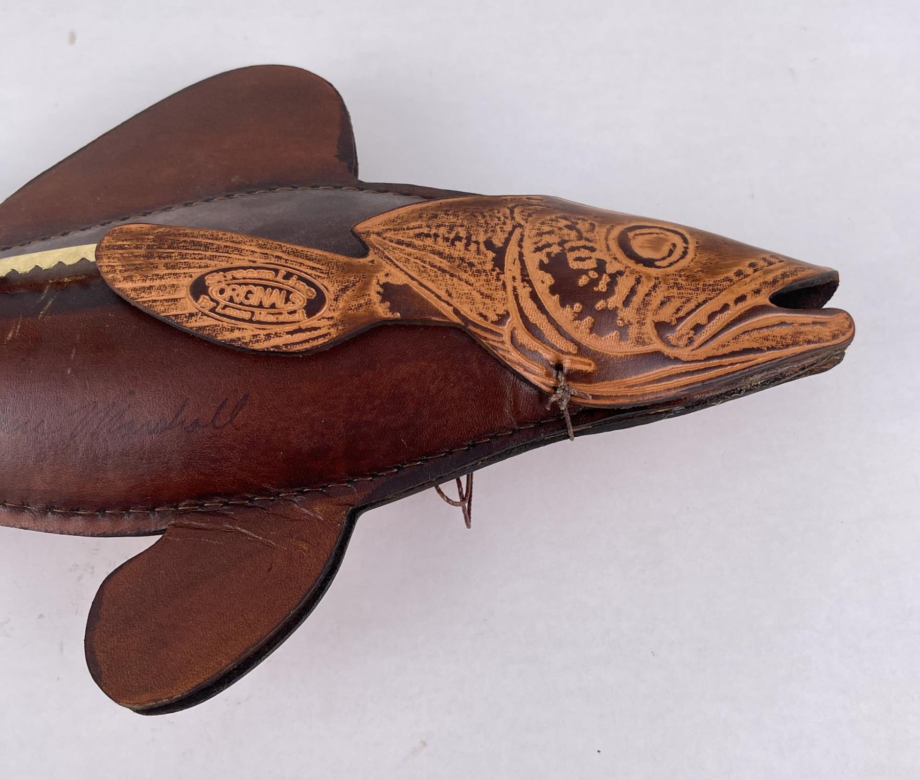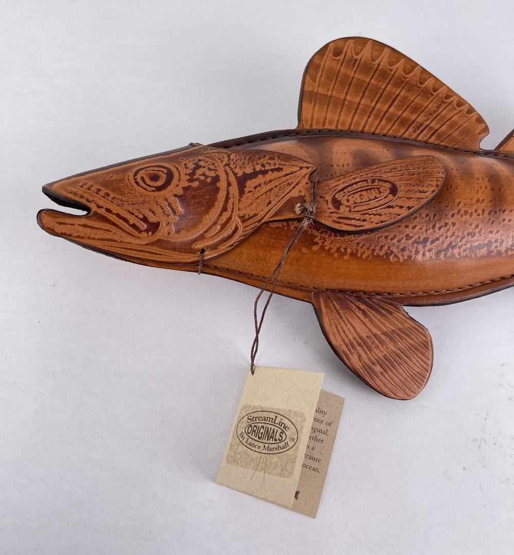 Very neat piece. Made from leather. Company is Stream Line Originals. Made by Lance Marshall. 15 1/4" long.