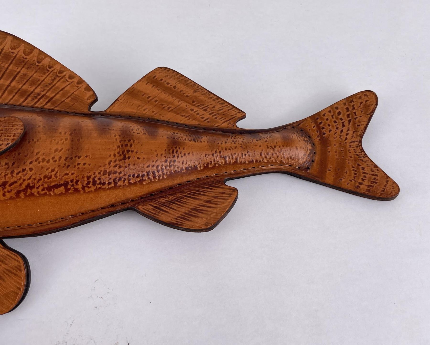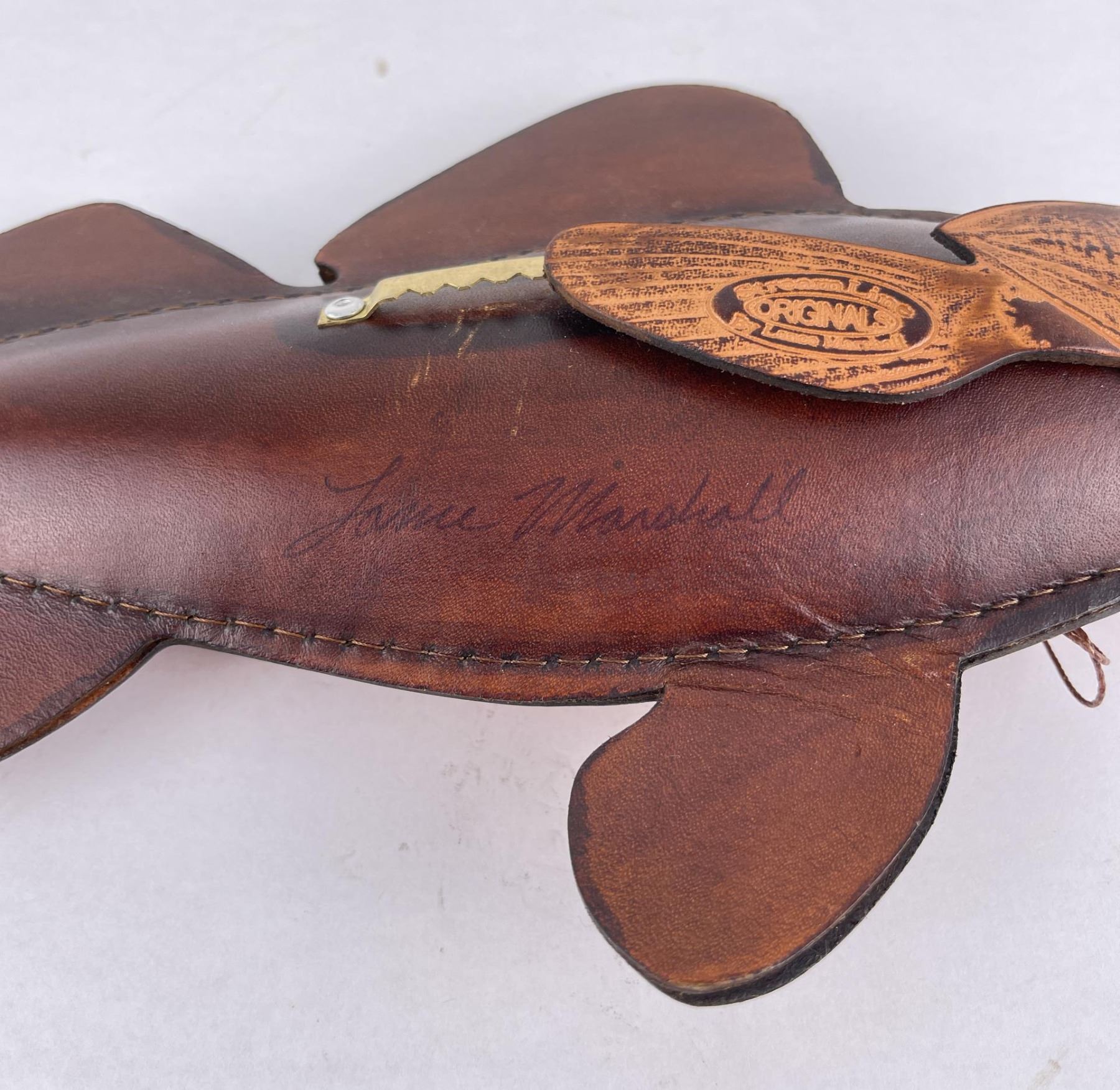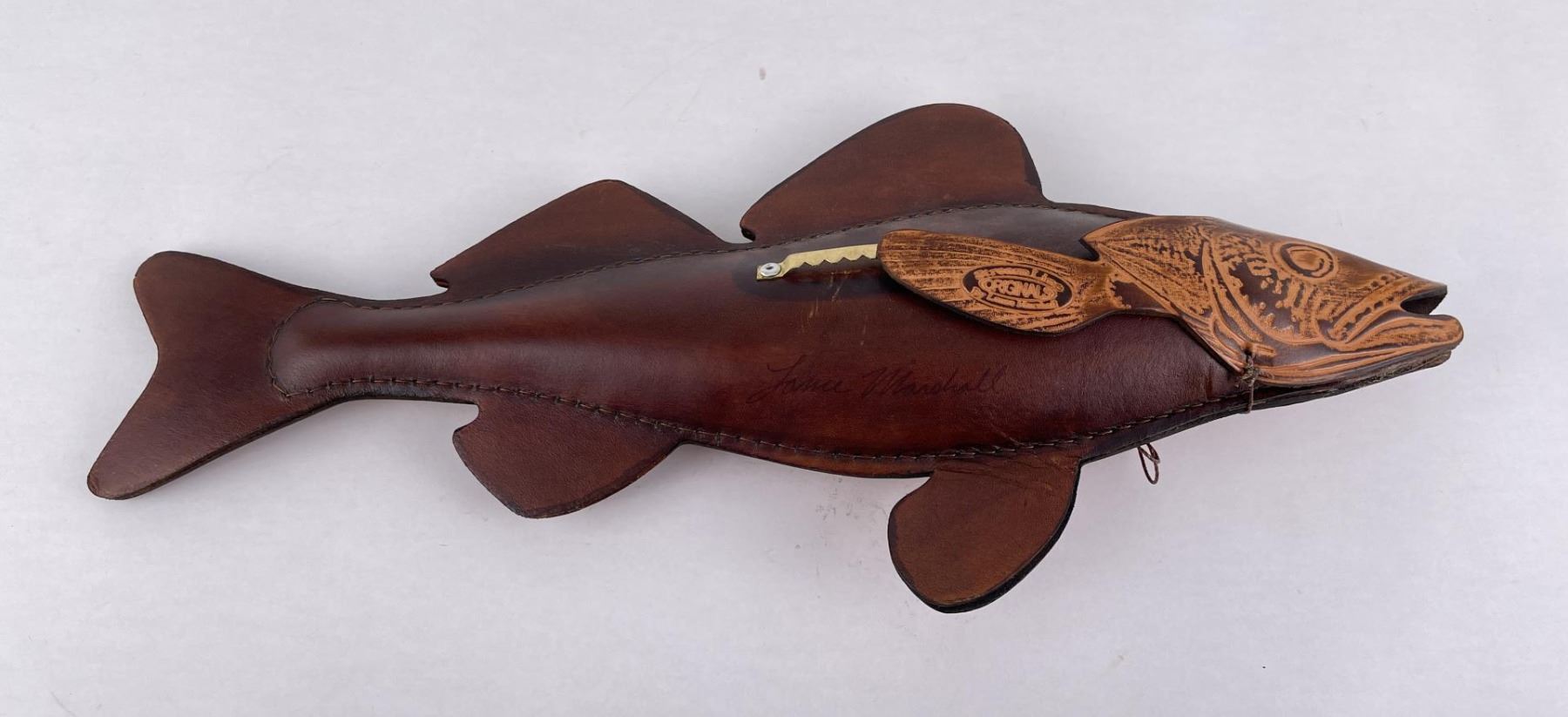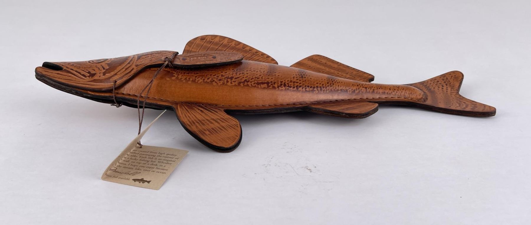 Very neat piece. Made from leather. Company is Stream Line Originals. Made by Lance Marshall. 15 1/4" long.