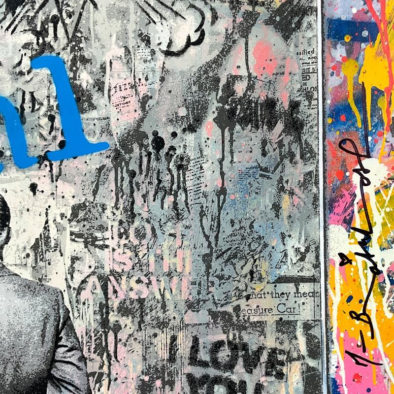 "Street Connoisseur" is a unique (UNIQ) mixed media on deckle edge paper by Mr. Brainwash, hand signed and bearing the thumbprint of the artist inverso. This piece comes custom framed. Includes Certificate of Authenticity. Measures approx. 24" x 20" (frame), 20" x 16" (image).